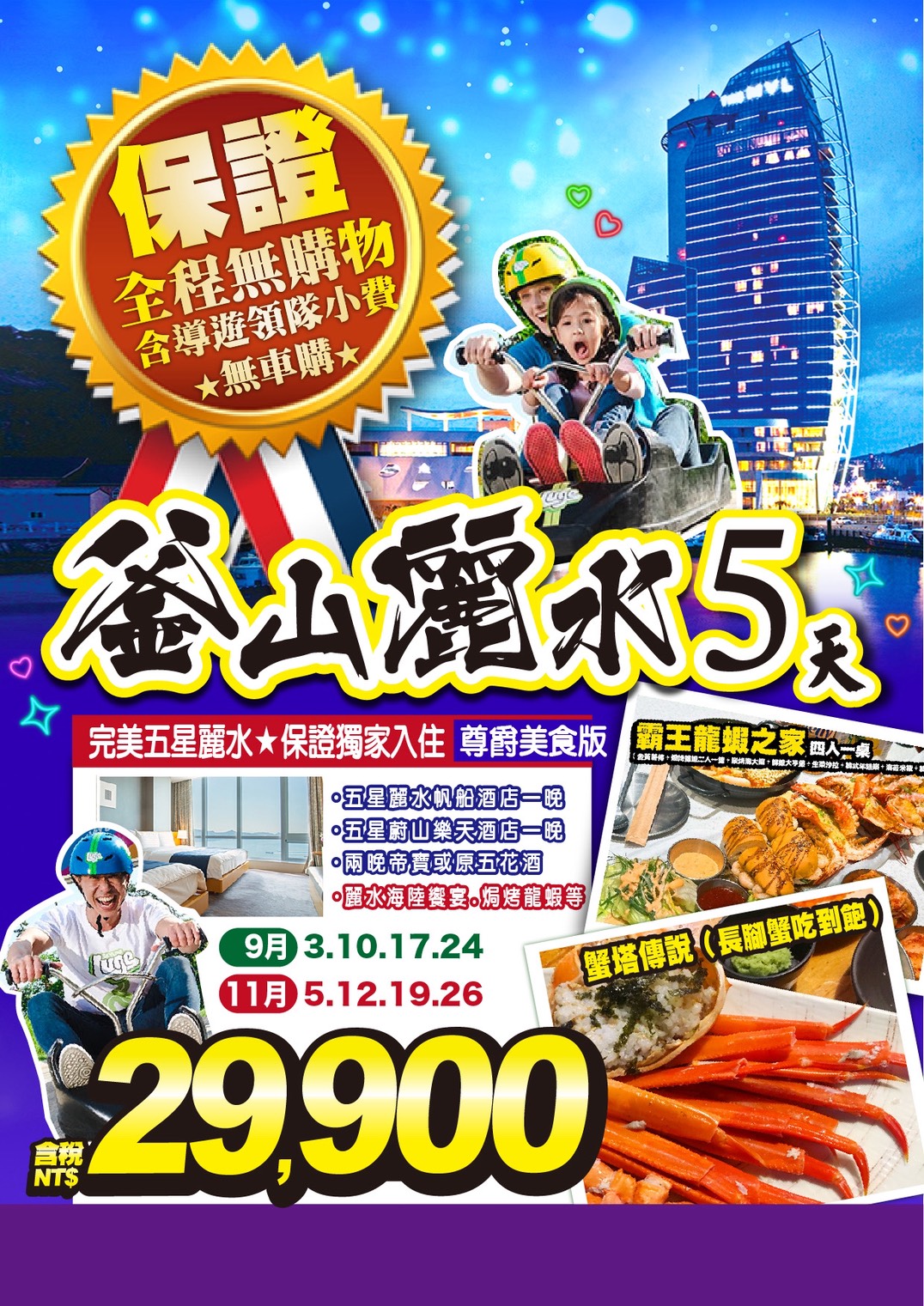 【德威航空】《全程無購物+含導遊領隊小費》玩美五星釜山玩麗水尊爵版5日~LUGE渠道滑車+纜車、巨濟島、海金剛船遊